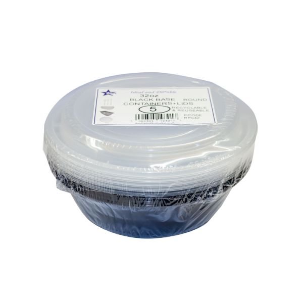 SDL Plastic Black Base Round Containers + Lids